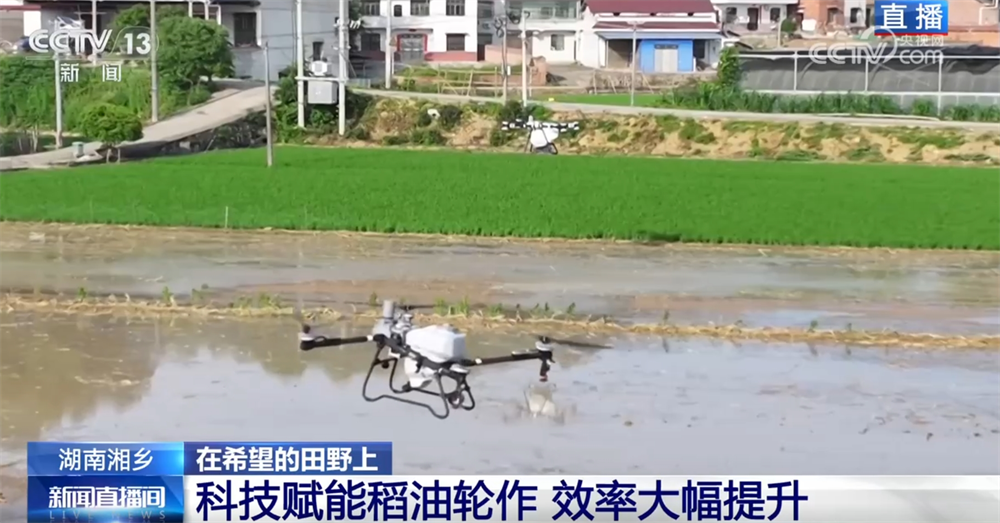 正在这个阶段,还有一件很是主要的工做就是施肥。眼下,施肥曾经很少依托人工了。现场,大型的农业无人机正正在功课,肥料平均洒正在田里。无人机还能做到从动避障、从动调理喷洒量,配备光谱仪还能够检测庄稼的长势,功课1亩地只需要不到20秒。