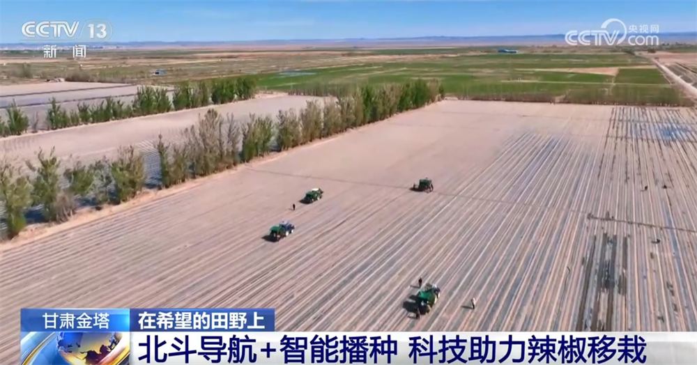 正在金塔县的一个农场,无人驾驶拖沓机牵引移栽机正在田间平稳行进,打孔、栽苗,一次就能完成辣椒的移栽。搭载斗极系统的农机通过预设线完成尺度化功课,为辣椒苗铺设精准“发展跑道”。农户告诉记者,以往种植时存正在起垄不曲、劳力不脚、效率低等问题。现正在有了新农机,每株辣椒都有平衡的发展空间,还加强抗倒伏能力,辣椒苗成活率大幅提拔。